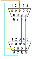 First of all, before two MSX'es can communicate, the grounds must be connected. (connect pin 9 to pin 9.) The cable uses seperate connections for communication every way. The three outputs are connected to three inputs both ways. (connect pin 6 to 1, pin 7 to 2, pin 8 to 3 and vice versa.)